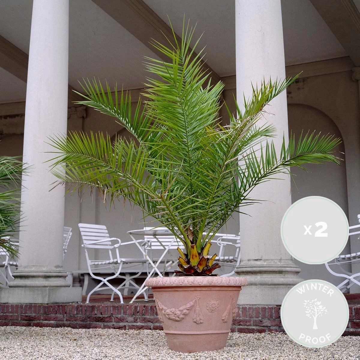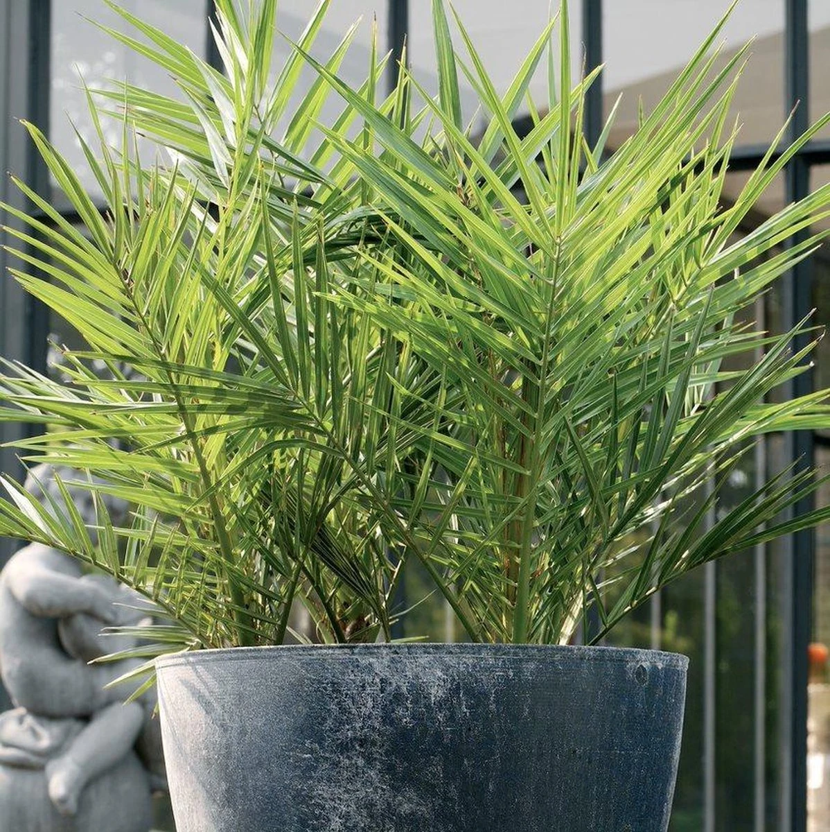 Phoenix Canariensis, beter bekend als Canarische dadelpalm, is een winterharde palm, die zoals de naam al doet vermoeden, afkomstig is van de Canarische eilanden. Doordat hij warmere temperaturen gewend is, kun je de palm in de zomer laten shinen op een zonnig terras en in de winter terug naar binnen halen. Zo kun je het hele jaar door genieten van deze plant!