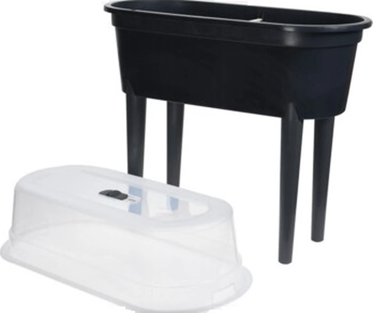 Plastic kweekkas met vergrendelbare deksel welke ervoor zorgt dat de warmte en vocht extra gestimuleerd wordt voor betere groei. Kweek je eigen groenten en kruiden of moestuintjes met deze kweektafel. Deze kweekbak heeft poten en kan daardoor zowel staand als op de grond gebruikt worden. Voorzien van ventilatie gleuf in de bovenkant van de deksel die kan worden geopend en gesloten indien nodig. Mocht er eventueel te veel water in de bak zijn gekomen, dan kan dat via de afwateringsgaten door de poten uitlopen.