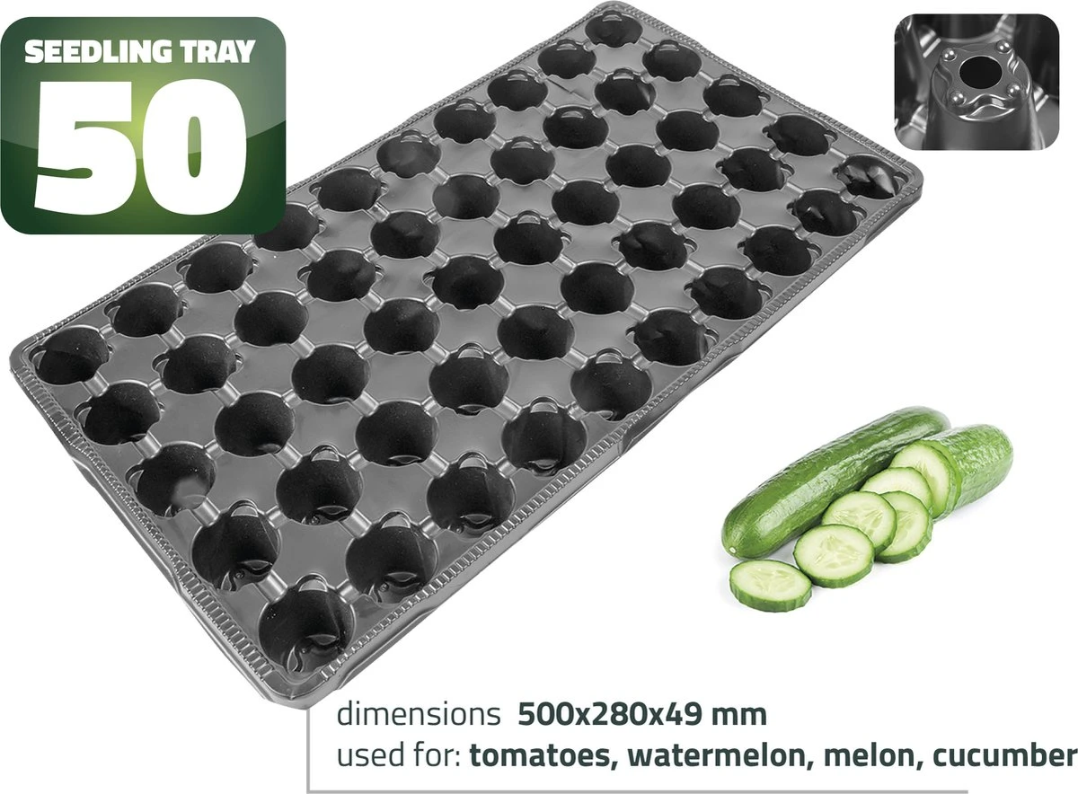De kweekplaten of zaaibakken zijn verkrijgbaar in 28,42,50,66, 72, 104, 160, 230 vakjes