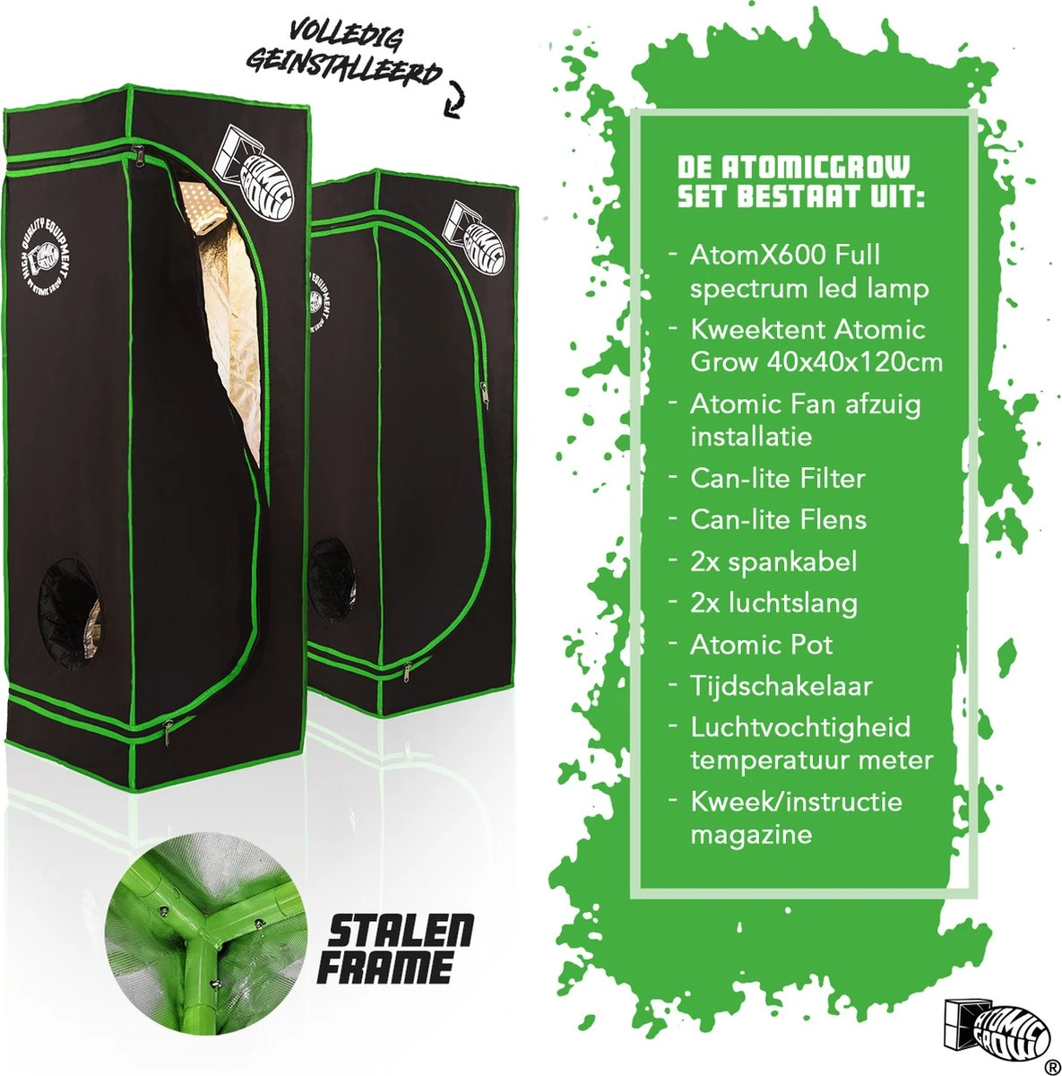 Ruimte besparend, volledig geurloos en energiezuinig. De set is van hoogwaardige kwaliteit en volledig op elkaar afgestemd. Extreem krachtig door onze speciale AtomX600 full spectrum led lamp. Verbluffende resultaten behalen is nog nooit zo makkelijk geweest voor iedereen.