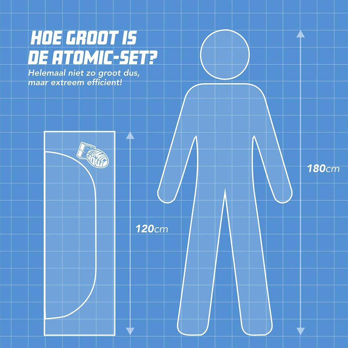 De AtomicGrow set maakt optimaal gebruik van de kleine hoeveelheid ruimte die het in beslag neemt. (40x40x120cm)