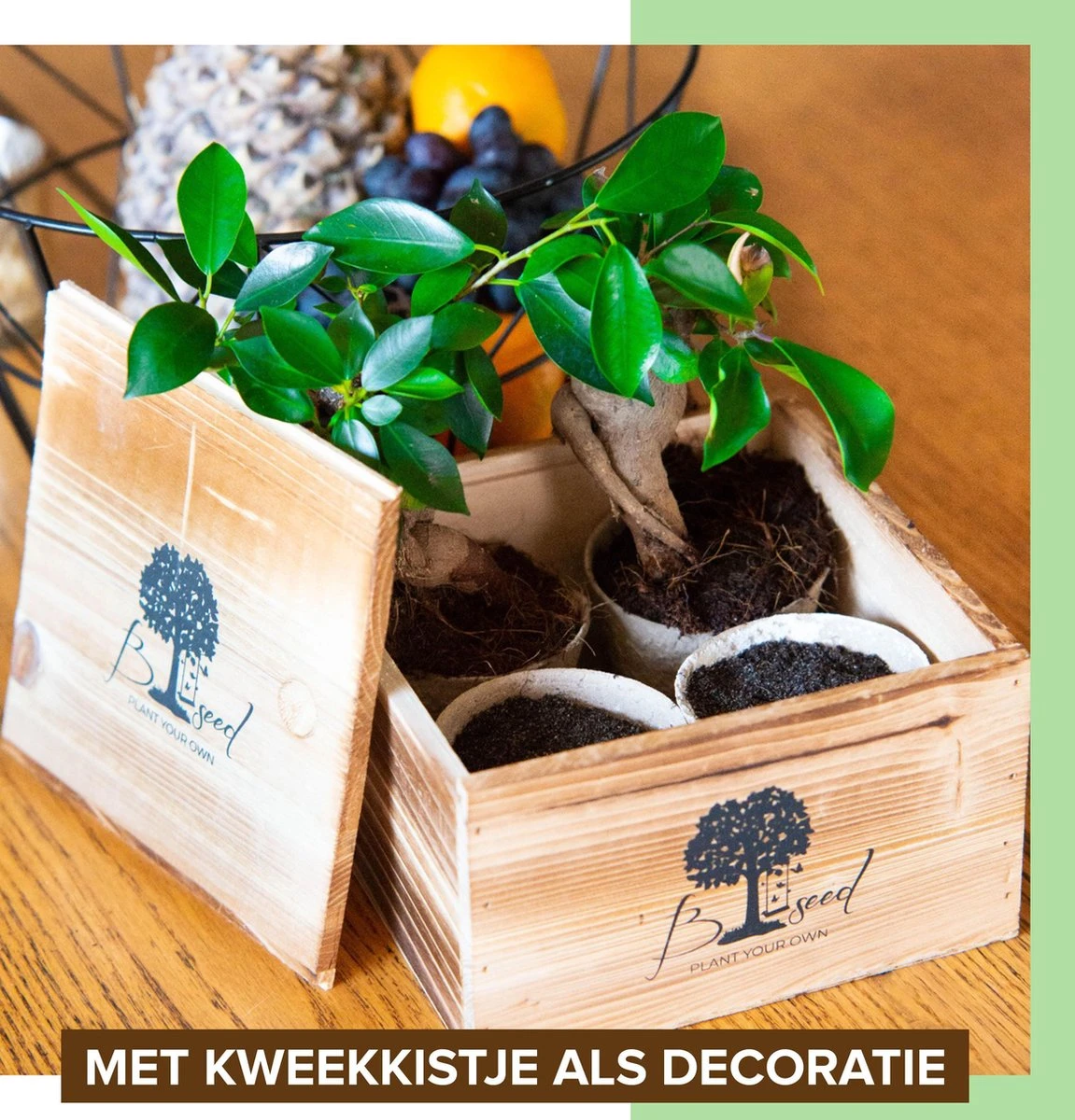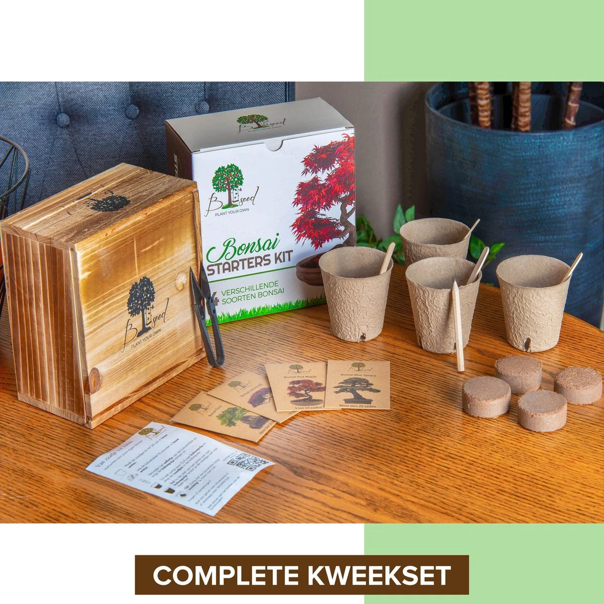 Wil je zelf je bonsai boom kweken? De bonsai starters kit met duidelijke instructies begeleidt je stap voor stap naar je eigen bonsai. Onze bonsai starters kit bevat alles wat je nodig hebt om tot wel 4 prachtige soorten bonsai-bomen zelf aan te planten. Heb je niet veel verstand van bonsai bomen? Geen zorgen bij aankoop van een bonsai starters kit krijg je alle tools die je nodig hebt bij het planten van de bonsai en je krijgt van ons ook een E-book cadeau met alle informatie over bonsai bomen, het kweken en de verzorging, zodat je lekker meteen aan de slag kunt!