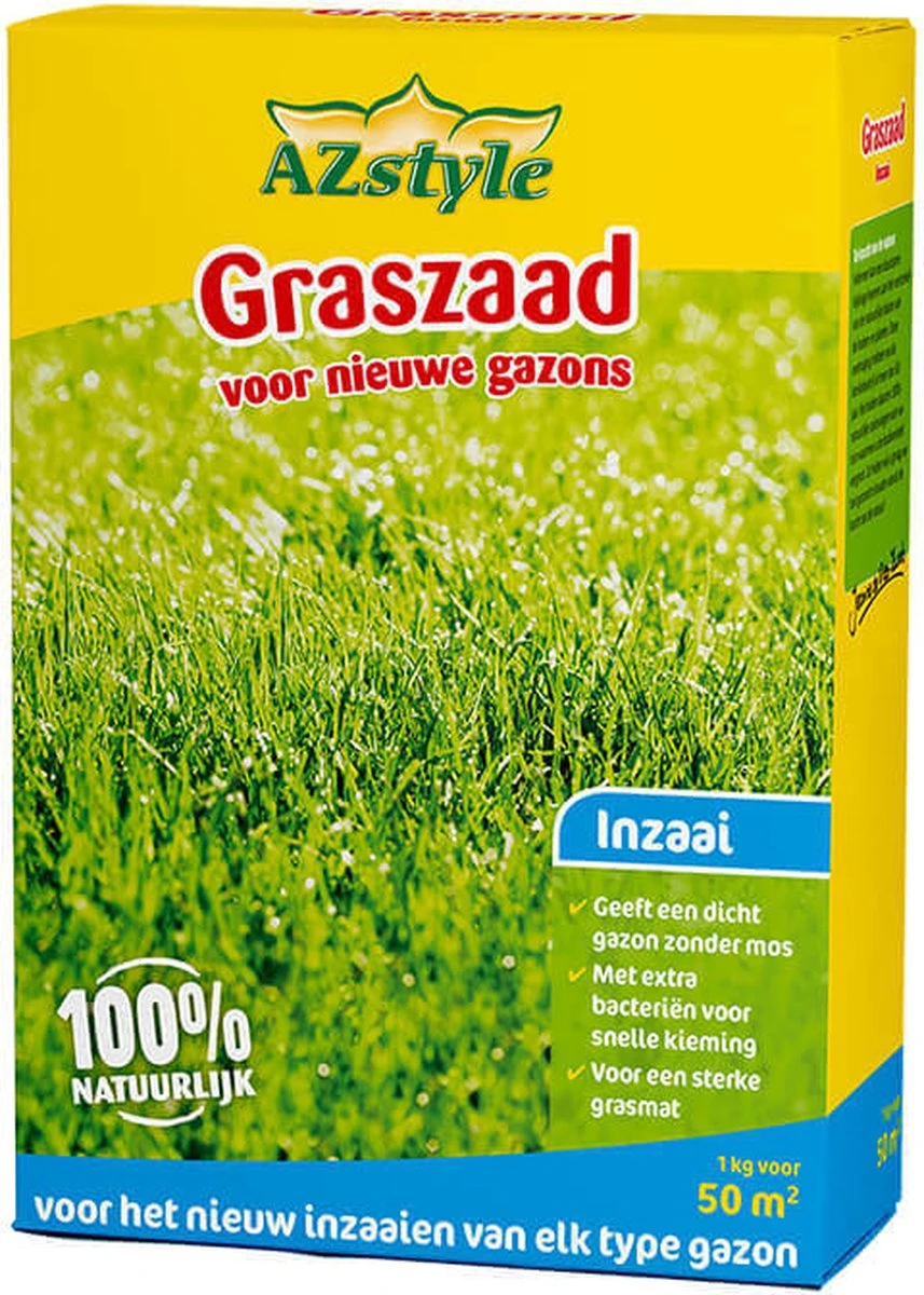 Graszaad-Inzaai is een graszaadmengsel dat is samengesteld uit grassoorten die geschikt zijn voor het inzaaien van zowel speel- als siergazons. Het is ook geschikt voor gazons die een deel van de dag in de schaduw liggen. Graszaad Inzaai geeft een dicht gazon zonder mos. Het graszaad bestaat uit verschillende grassoorten die veel zonlicht en schaduw verdragen. De combinatie van de grassoorten en micro-organismen zorgt voor snelle ontkieming en ontwikkeling van het gras. Voor een extra dicht gazon. Het kiemen van het zaad is afhankelijk van de bodemtemperatuur en de vochtigheid van de bodem. Hierdoor kost de kieming in het voorjaar meer tijd dan in de nazomer. Houd de grond na het zaaien vochtig totdat het gras is opgekomen.
