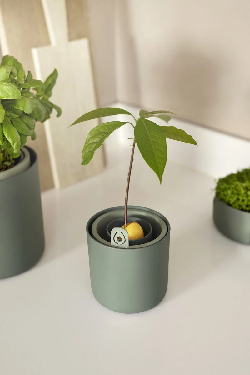 Kweek je eigen avocadoplant gemakkelijk met de amazing avocado bloempot. Plaats een avocadopit op de floater die drijft op het water in de buitenpot. Na een paar weken zie je de eerste wortels groeien en kun je de pit in potgrond planten om je huis te vergroenen.