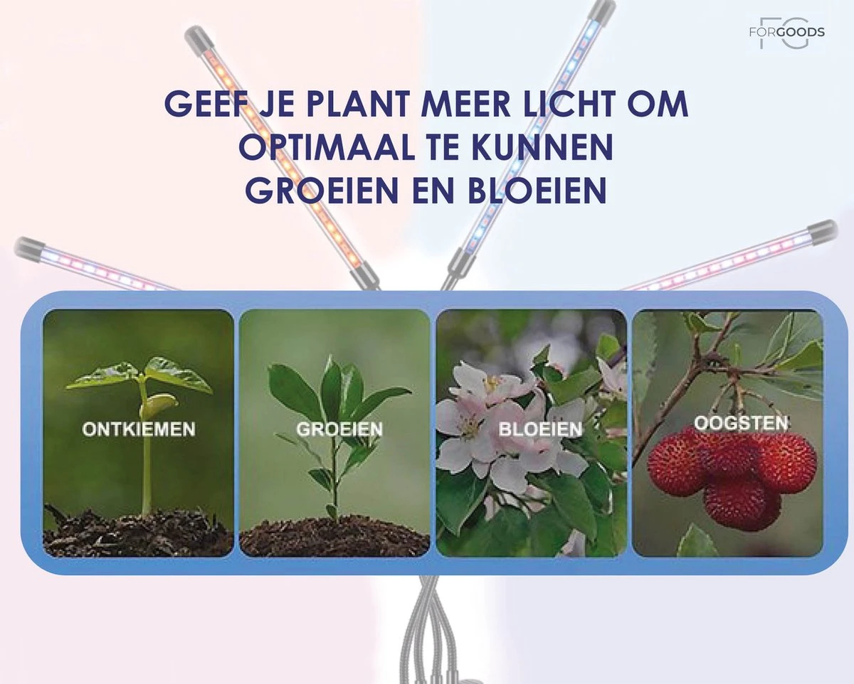 KAMERPLANTEN, FRUIT-, GROENTEN- EN/OF KRUIDENPLANTEN KWEKEN? DEZE GROEILAMP MET ZIJN 4 ARMEN VOOR EEN GROTER BEREIK, BOOTST ZONLICHT NA EN ZORGT ERVOOR DAT UW PLANTEN SNELLER ONTKIEMEN, GROEIEN, BLOEIEN EN EEN VRUCHT DRAGEN. KOOP DEZE GROEILAMP VANDAAG NOG EN PROBEER HET ZELF!