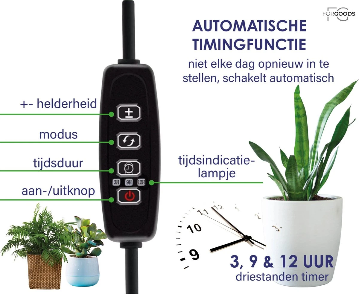 3 timerfuncties. De opties zijn van 3, 9 of 12 uur, zodat uw planten de juiste hoeveelheid licht krijgen.