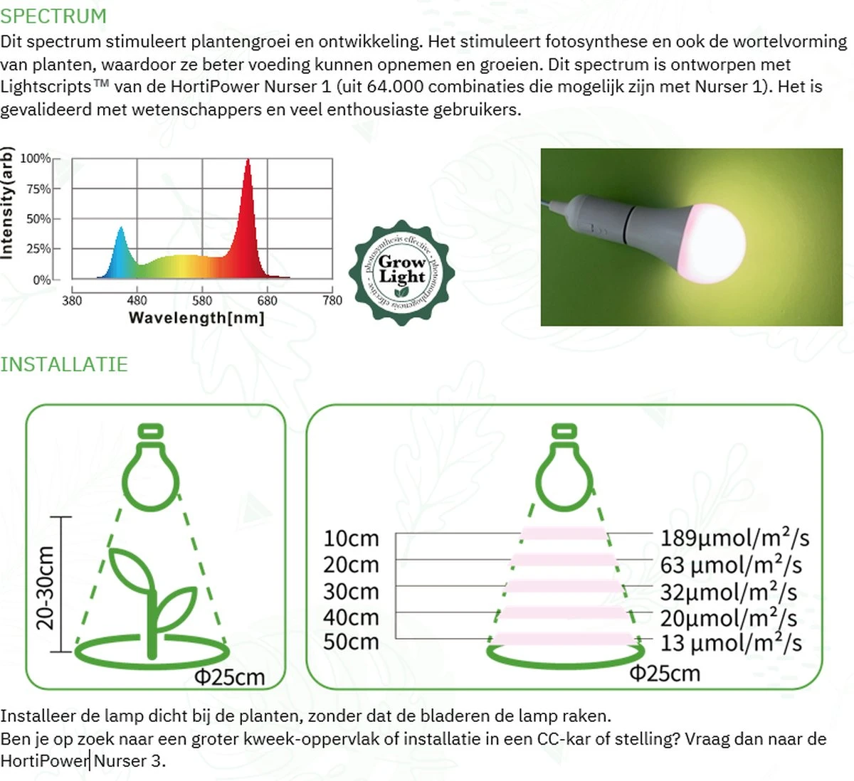 De HortiPower Bloomer 2 verspreidt het juiste licht waarbij planten zich fijn voelen. Het licht spectrum, lichtsterkte en andere lichteigenschappen zijn optimaal voor gezonde en gelukkige planten. Het licht is wit met een zachte roze tint. Ben je dol op planten in een schemerige ruimte in huis? Met de Bloomer 2 is het geen probleem meer, je kunt de gezondheid en groei van planten stimuleren met je eigen speciale plantgerichte licht waar planten dol op zijn.