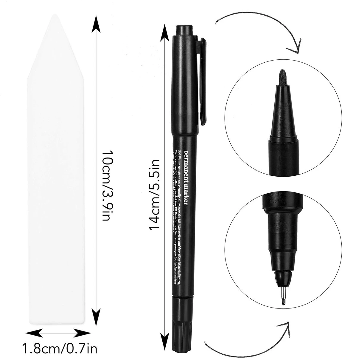 HIGH-QUALITY SET van 120 plantenlabels en zwarte viltstift in 2 diktes. Grootte van de tuinstickers: 10×1,6×0,1cm. Etiket en pen zijn weerbestendig – ideaal voor het labelen van individuele bedden.