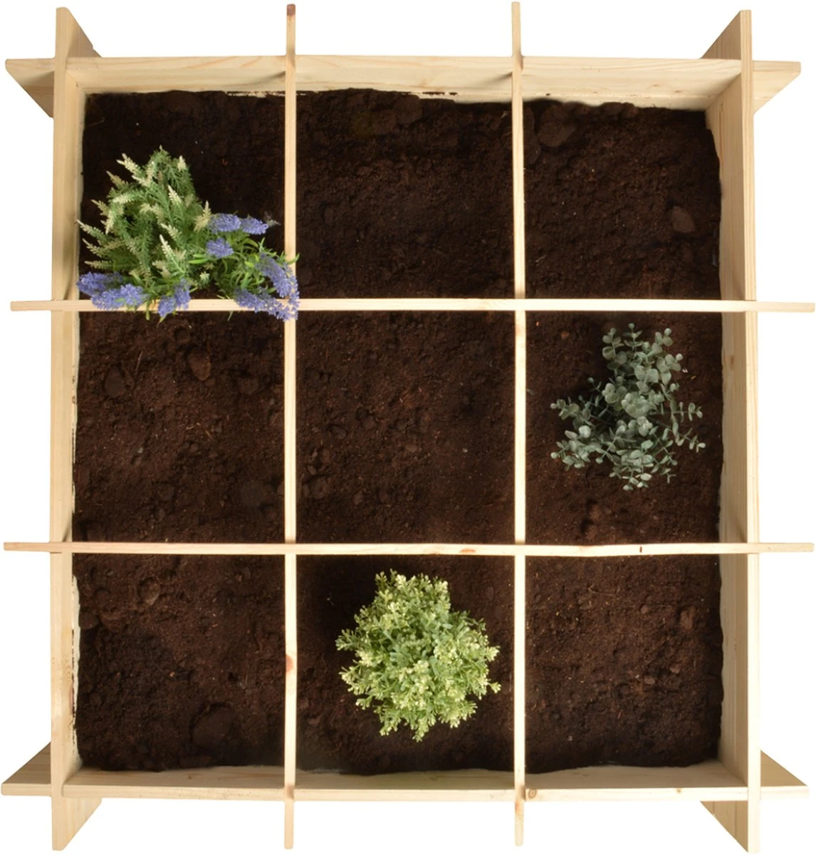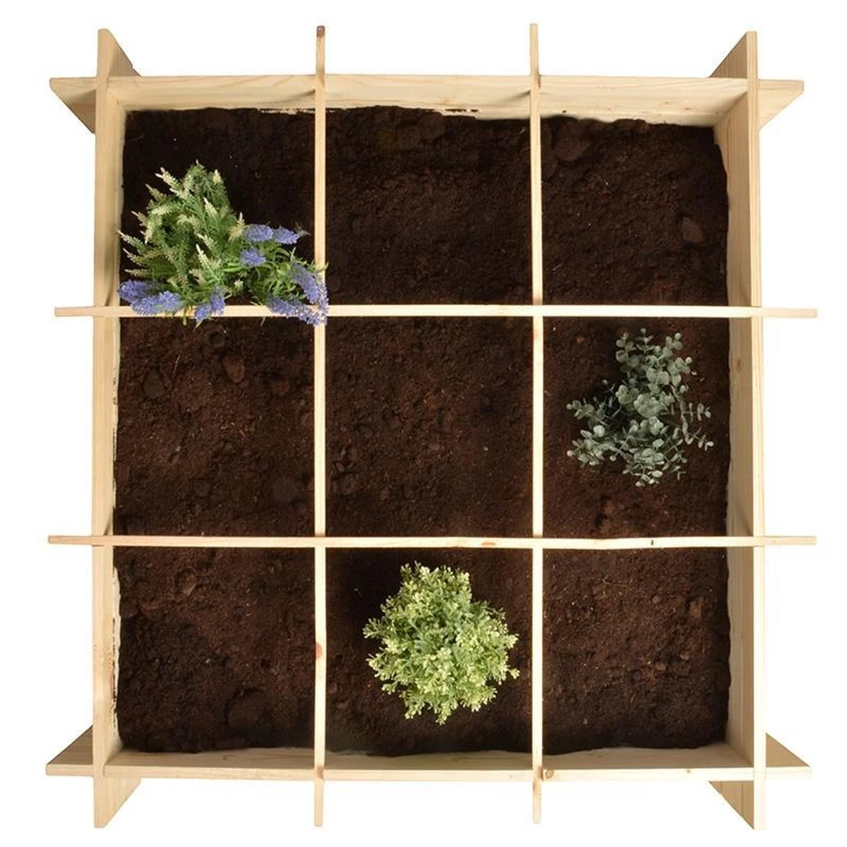 Creëer snel en eenvoudig een compacte moestuin. Met de meegeleverde scheidingslatten ontstaan 9 vakken, die individueel gevuld kunnen worden (denk hierbij aan keukenkruiden, tomaten-, courgetteplanten etc.). Het inbegrepen worteldoek zorgt ervoor dat de grond in de vierkante meter tuin blijft, en bovendien onkruidvrij. Dus ideaal voor stadstuinen en balkons.
