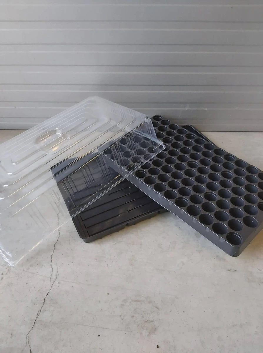 Met deze groeikappen creëer je een gunstige omgeving om je plantjes in de trays te laten opgroeien. Gebruik je de trays om in te stekken, dan kan je haast niet zonder! De kappen zorgen voor een stabielere omgeving om in op te groeien. Zo verdampen je planten minder water, warmt de bodem sneller op waardoor kiem- stekpercentages vele malen hoger liggen. Een absolute meerwaarde voor iedereen die kweekt in trays! Deksel heeft een binnenhoogte van 10 cm.
