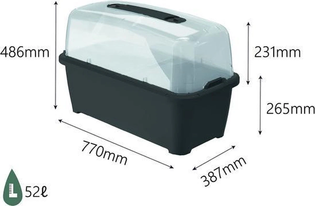 Afmeting: 77 x 38,7 x H 82 cm / 52 L