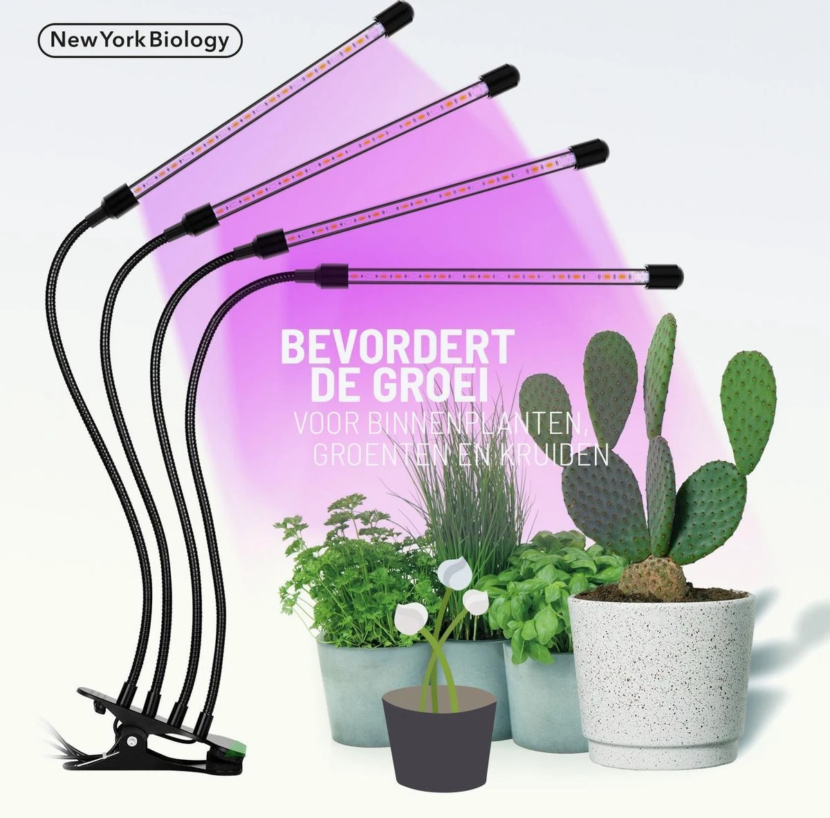 Deze groeilamp bestaat uit vier armen met in totaal 80 efficiënte en energiezuinige LEDs (52 rode en 28 blauwe). Met deze lamp groeien uw planten op plekken waar geen zonlicht is. Het rode licht bevordert de fotosynthese, ontkieming, bloei en vruchtontwikkeling. Het blauwe licht zorgt voor cholorofylsynthese waardoor de planten meer energie opnemen en beter kunnen ontkiemen.