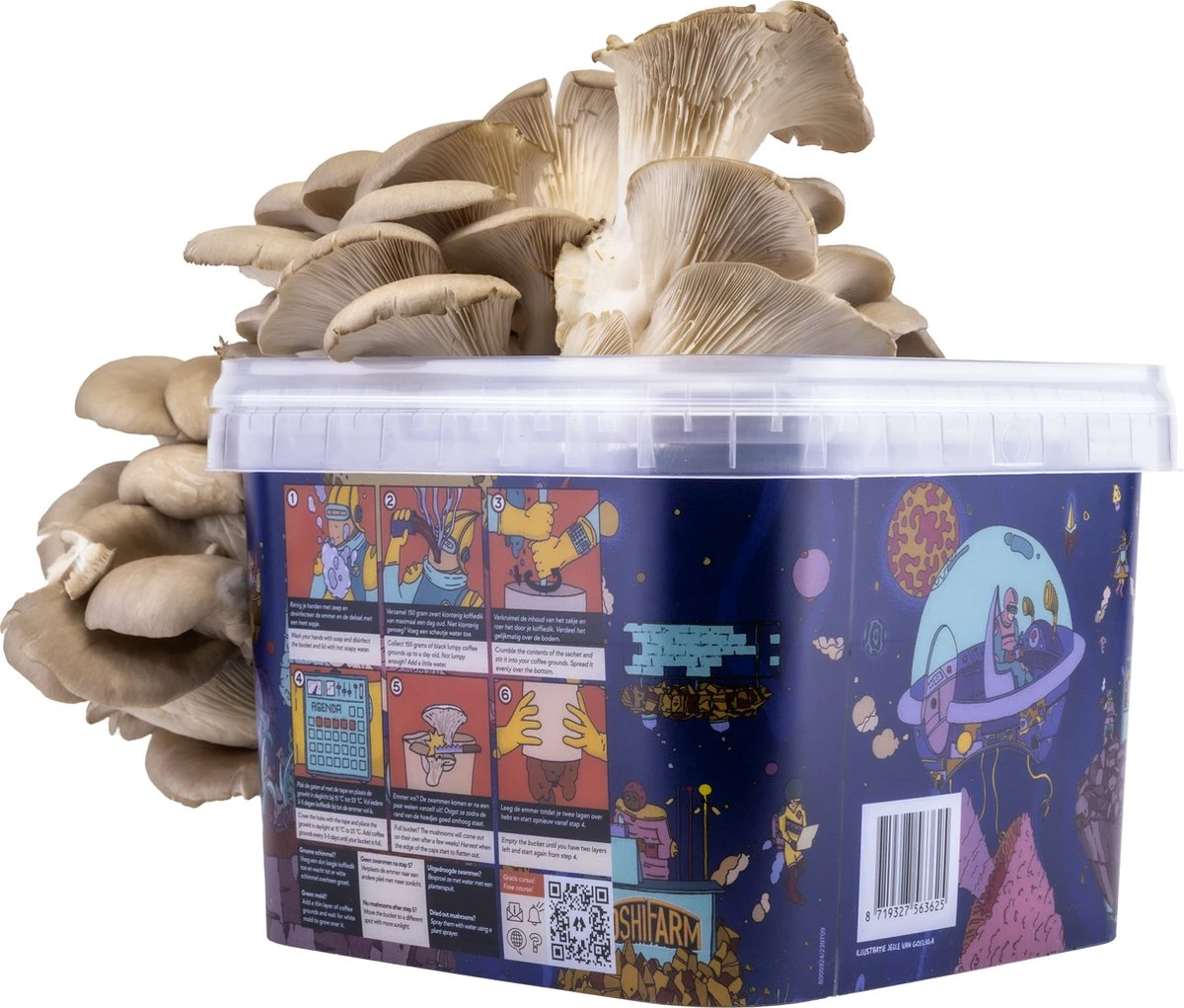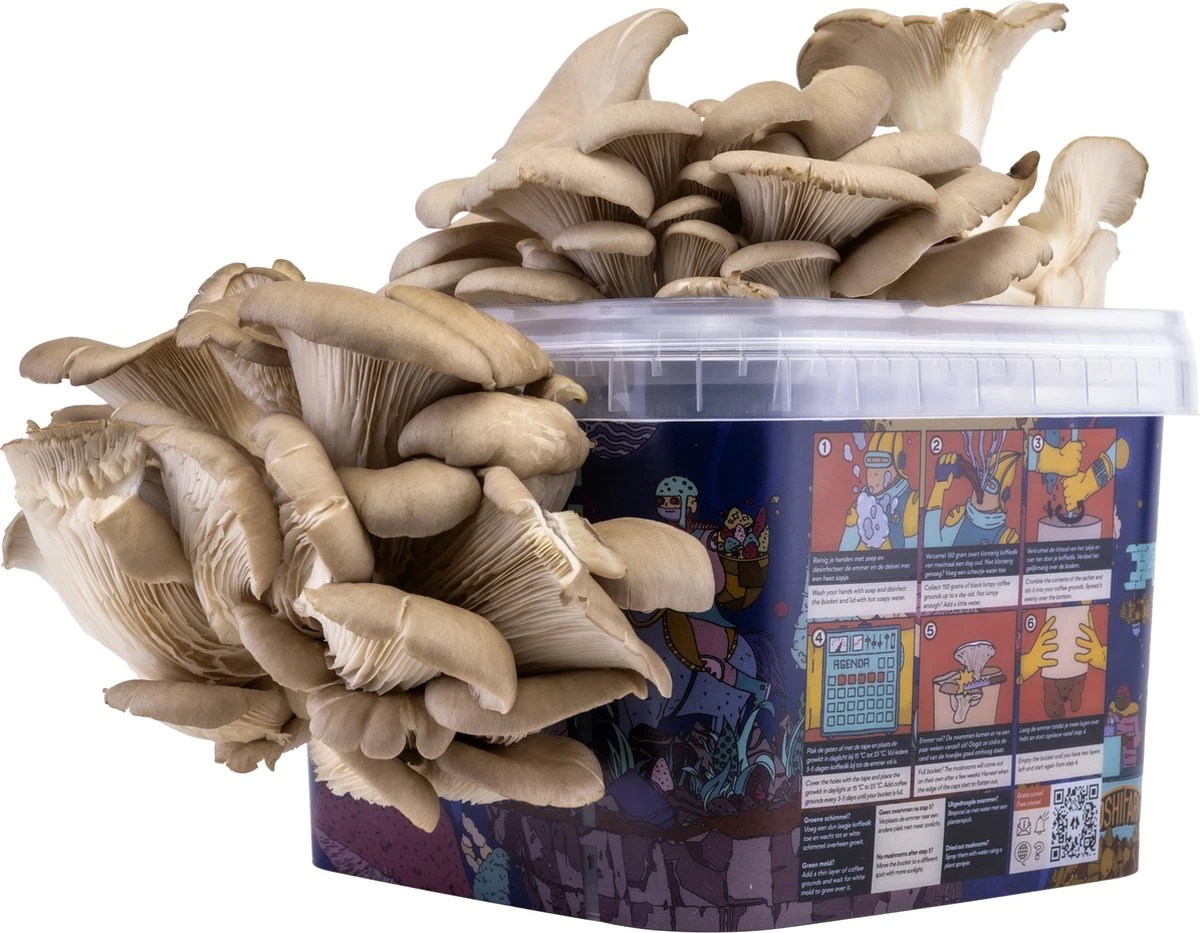Deze oesterzwam kweekset is geschikt voor de grijze oesterzwammen, maar ook voor de andere paddenstoelen. Probeer eens iets nieuws zoals de gele of roze oesterzwam. De kweekset is bedrukt met kweekinstructies, zodat je die nooit kwijt raakt. En als handige bonus schrijf je je bij ons gratis in voor een online kweekcursus. Oesterzwammen kweken was nog nooit zo gemakkelijk als nu.
