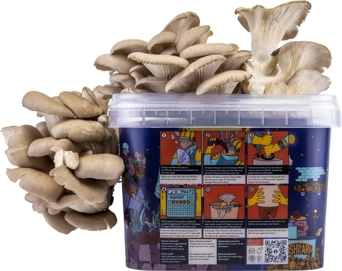 Wat doe jij met jouw oude koffiedik? Bij het gft of bij het restafval? Je kunt er met deze growkit ook thuis oesterzwammen op kweken! En dat is helemaal niet zo moeilijk. Oesterzwammen kweken lukt het hele jaar door, dus je hoeft niet meer te wachten tot je je moestuin in het voorjaar kunt aanleggen. Het enige dat je nodig hebt is een beetje koffiedik en wat geduld. En deze growkit natuurlijk! Leuk voor jezelf of als origineel cadeau.