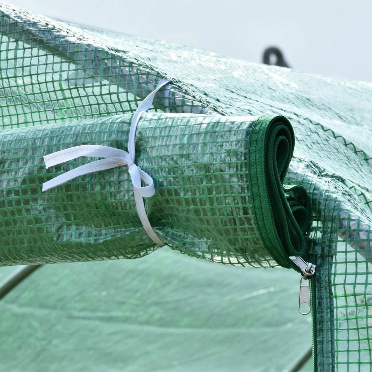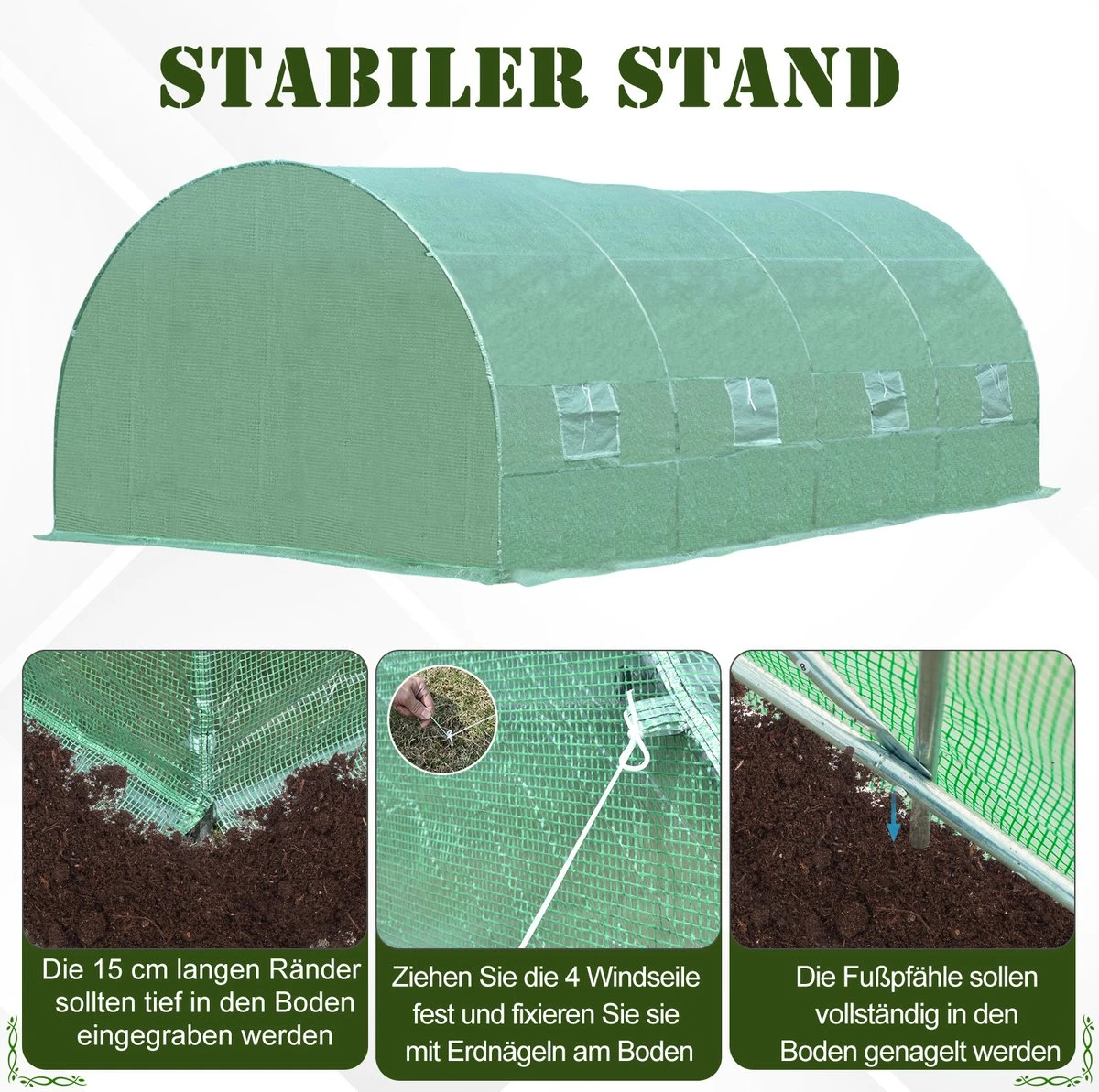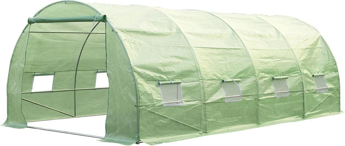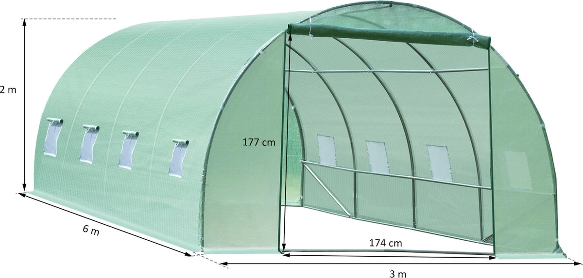 Beveilig en bescherm uw planten tegen ongunstige weersomstandigheden met onze tunnelkas! Onze kas, gemaakt van waterafstotend en transparant polyester folie, biedt voldoende ruimte en bevordert de groei van groenten, fruit en bloemen. Het frame is gemaakt van gegalvaniseerde metalen buizen. Dit maakt het weerbestendig en roestvrij. Uw planten hebben altijd de optimale temperatuur, vochtigheid en voldoende zonlicht. En u bent goed beschermd tegen insecten en vogels. De structuur is zeer eenvoudig bin elkaar te zetten, de buizen in elkaar schuiven en de folie erover schuiven en vastzetten met deze speciale bandjes. Dankzij de 20cm langere onderkant is de tunnelkas extra te bevestigen door deze rand in de grond te graven.