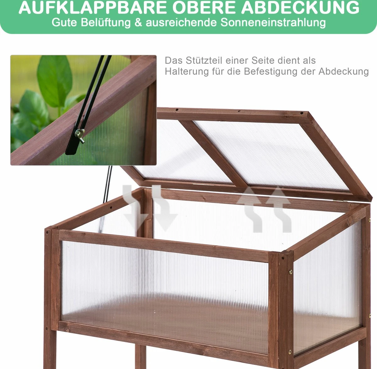Outsunny Verhoogd Frame Van Hout Koude Kas Kruidenbed Voor Tuin Balkon Bruin Hout Pc-plaat 845-472