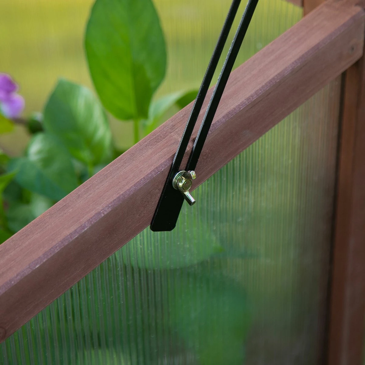 In deze houten kas van Outsunny met zijn eenvoudige en rustieke uitstraling kun je goed voor je planten zorgen. Transparante polycarbonaatpanelen zorgen voor het maximaal doorlaten van licht en houden tegelijkertijd warmte vast om een vroege kieming van zaden te bevorderen of om planten in het naseizoen te beschermen. Deze kas zorgt voor een ideale temperatuur van de omgeving, je planten kunnen genieten van het zonlicht en opgroeien tot gezonde planten. Eigenschappen: · Het massief houten frame is duurzaam en betrouwbaar · Warme kas die het groeiseizoen verlengt · Het doorzichtige polycarbonaatplaat met goede lichttransmissie zorgt ervoor dat planten het zonlicht volledig kunnen absorberen · Te openen klep voor een goede ventilatie en gemakkelijke verzorging van de planten · Een steunarm aan één zijde ondersteunt de klep als deze open is · Het design van het klep voorkomt ophoping van regenwater · Uniek design met vier houten poten om het verzorgen van planten gemakkelijker te maken · Montage nodig Technische gegevens: · Kleur: Bruin · Materiaal: Dennenhout, printplaat · Afmetingen: 90 L x 50 B x 93 H cm · Hoogte van de voorste dakrand: 84,5 cm · Te beplanten gebied binnen: 84,5 L x 45 B cm · Hoogte dakrand voorzijde: 30 cm · Hoogte van de interne achterste dakrand: 38 cm · Afstand tussen de openingen van de bovenklep: 57 cm · Draagvermogen: 50 kg · Omvang van de levering: 1 x Verhoogd plantenbed · Verzendbriefje: Geen verzending naar Nederlandse eilanden.