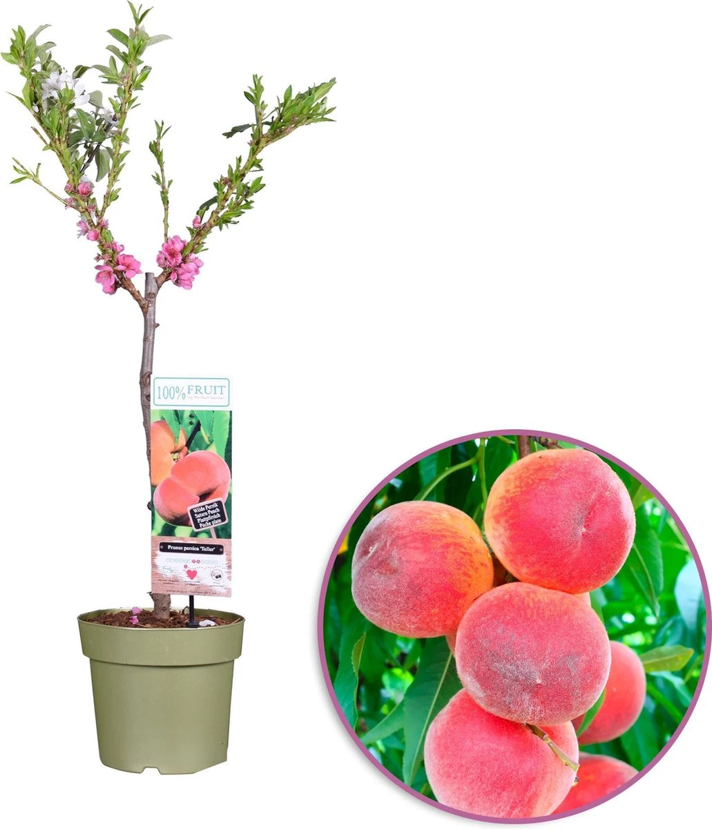 De prunus persica ‘Perzik’ geeft in maart/april een bloei met prachtige met roze bloemen. Dit zorgt voor een mooi lentetafereel. Rond augustus kun je de perziken van de takken plukken. De ‘Perzik’ is donkerrood van kleur en heeft wit vruchtvlees. Deze vruchten zijn sappig en smaken heerlijk zoet.