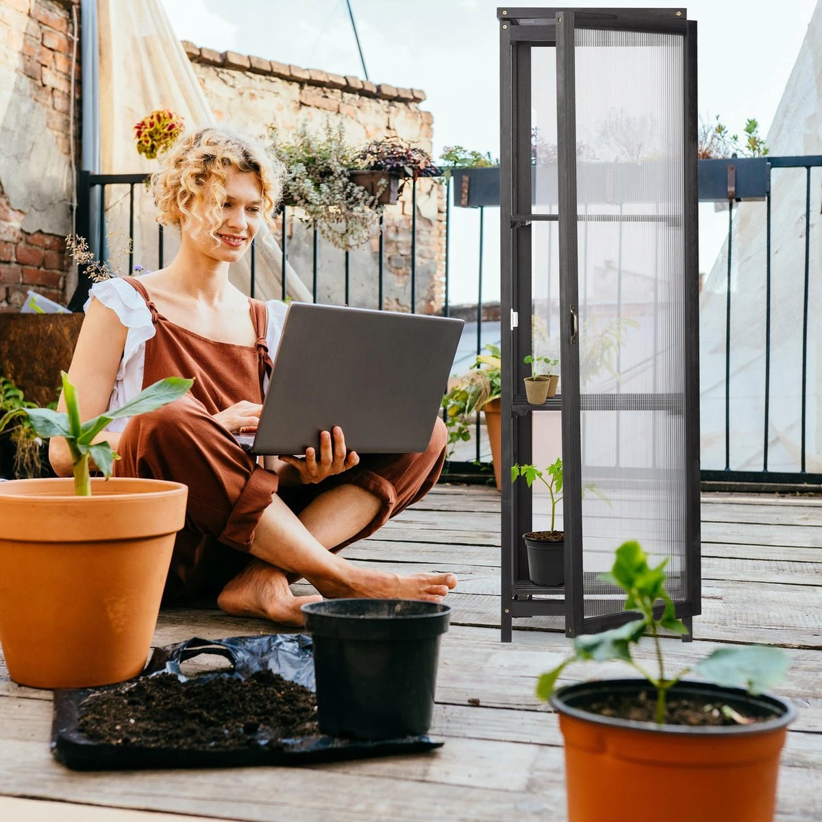 Deze houten kweekkas is voor iedereen die van graag tuiniert heel handig voor het kweken van planten. De lichtdoorlatende polycarbonaat platen zorgen voor voldoende licht en de grote dubbele deur zorgt voor een optimale luchttoevoer. Bovendien kom je met dank aan de dubbele deur makkelijk bij je planten. De stevige balkonkas dient als bescherming als het waait, regent of koud is. Dit maakt de kas geschikt voor verschillende planten Omdat de hobbykas compact is, is hij ook geschikt voor kleinere balkons.
