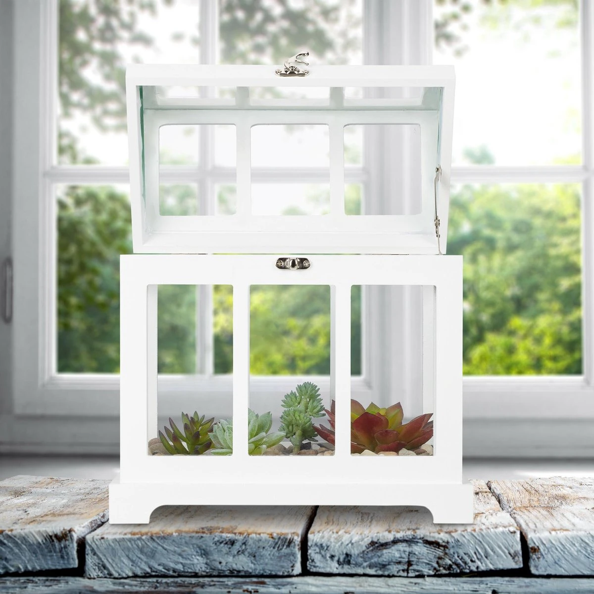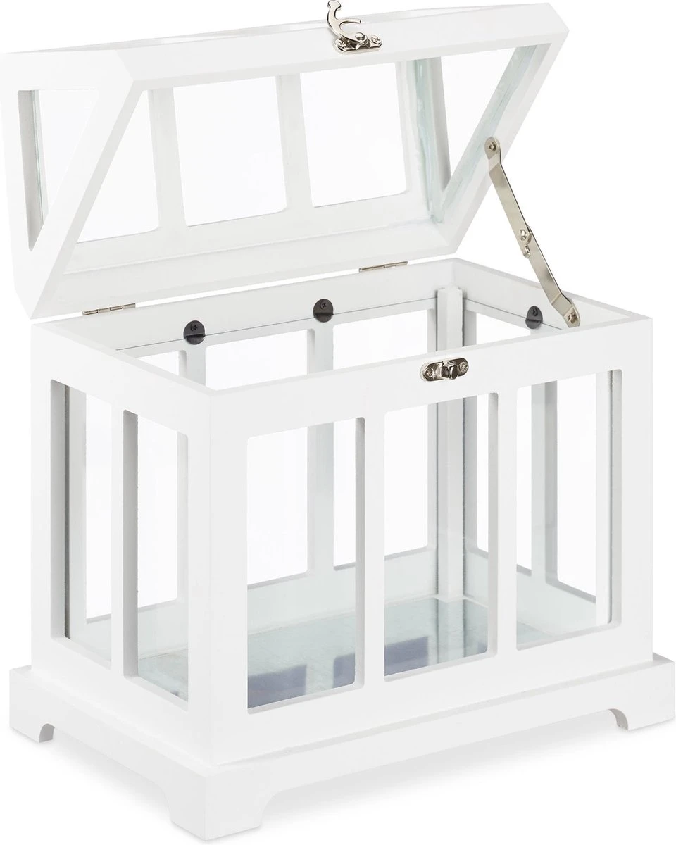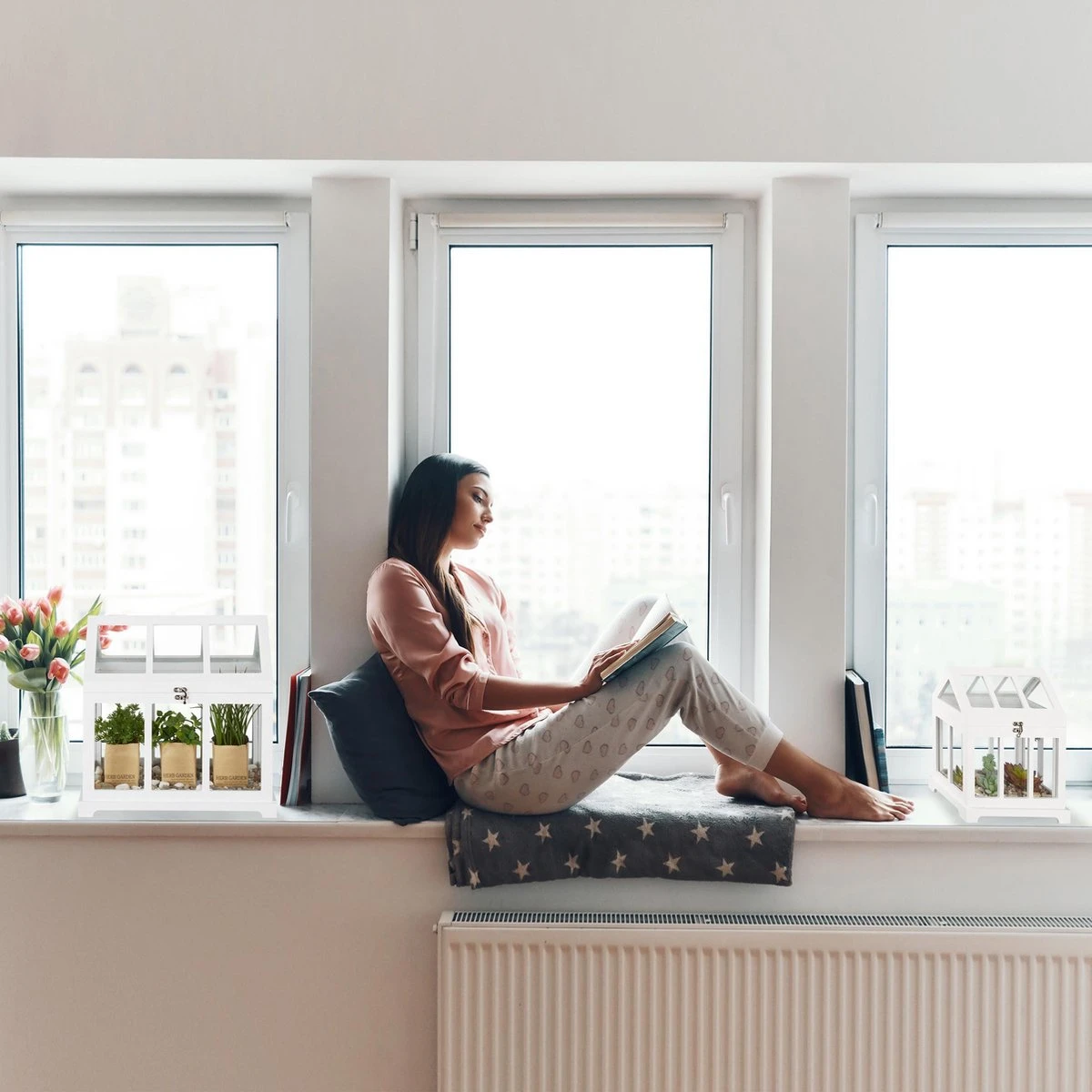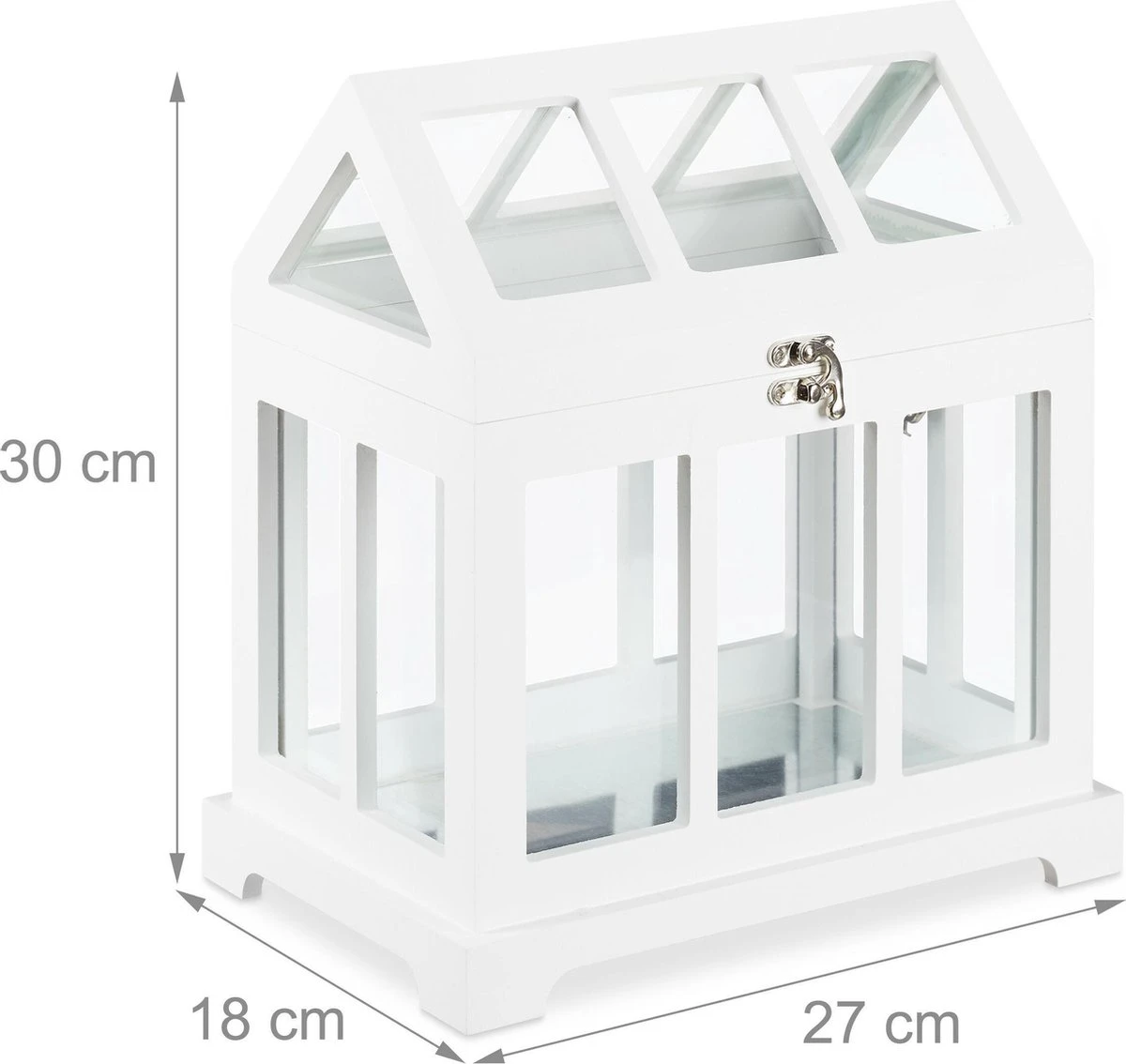 Indoor tuinieren is helemaal in. Met deze bestaande uit 2 mini kweekkassen kun ook jij binnen in huis aan de slag gaan met tuinieren. Zet de kleine kweekkas op de vensterbank en gebruik hem voor het opkweken van zaden. Kweek verse kruiden in het kasje of geniet van je mooie bloemen. Deze set met plantenkassen in 2 groottes is ook geschikt voor vetplanten. Het dak kun je omhoog doen en dit zorgt voor een optimale luchtcirculatie. Je kunt het glazen kasje overigens ook gewoon als decoratie gebruiken.