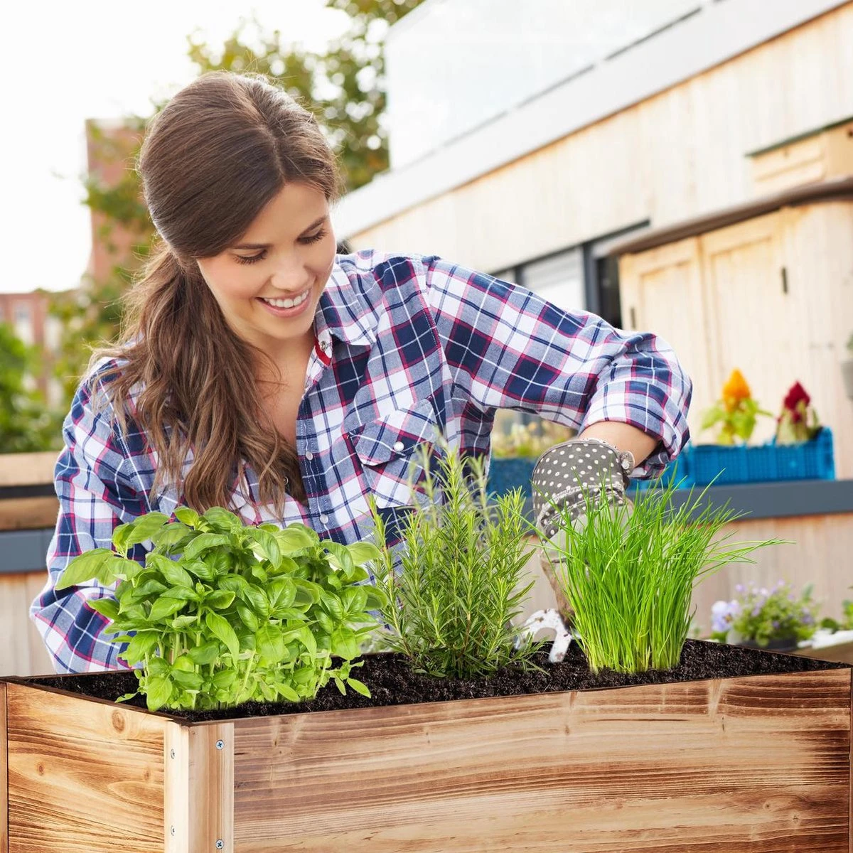 – Kruiden, groente of bloemen in de moestuintafel planten