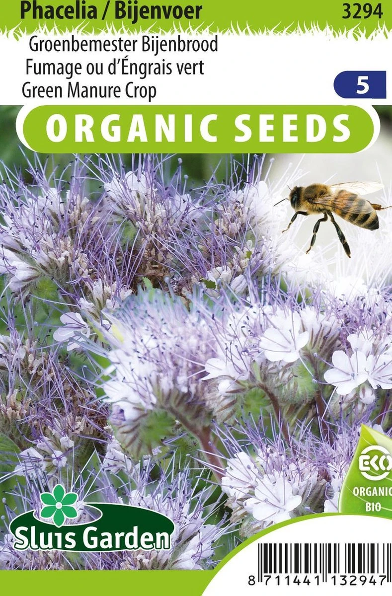 Goed voor ca. 70 m2. Zaaien in de vollegrond direct na de oogst of op niet gebruikte percelen. Niet uitdunnen. Door de vorming van een breedvertakte wortelmassa maakt Phacelia de bodem los en doorlaatbaar. Bloeit zeer rijk en is een goede voederplant voor bijen. Kan na drie maanden door de grond gewerkt worden, bij voorkeur in het najaar. Geeft veel organische stof in de grond.