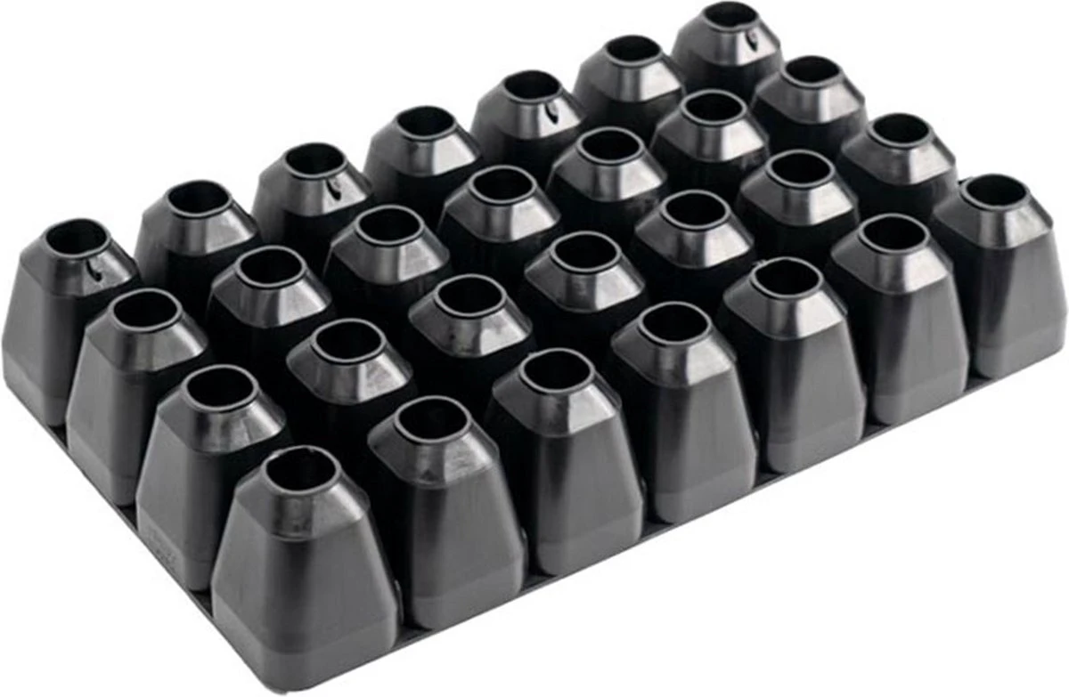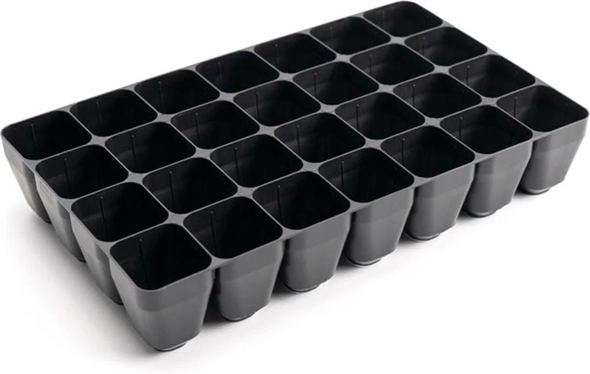 De 28 cel tray heeft echt wat ruimte om in te groeien. Ideaal om te gebruiken voor planten of groenten die wat langer moeten staan of niet van wortelverstoring houden. De tray heeft grote cellen met een afmeting van 49 mm (1,92″) en biedt groeiruimte voor grotere zaailingen. We gebruik ze graag voor komkommers en meloenen of om kleine bloemenstekjes in over te planten.