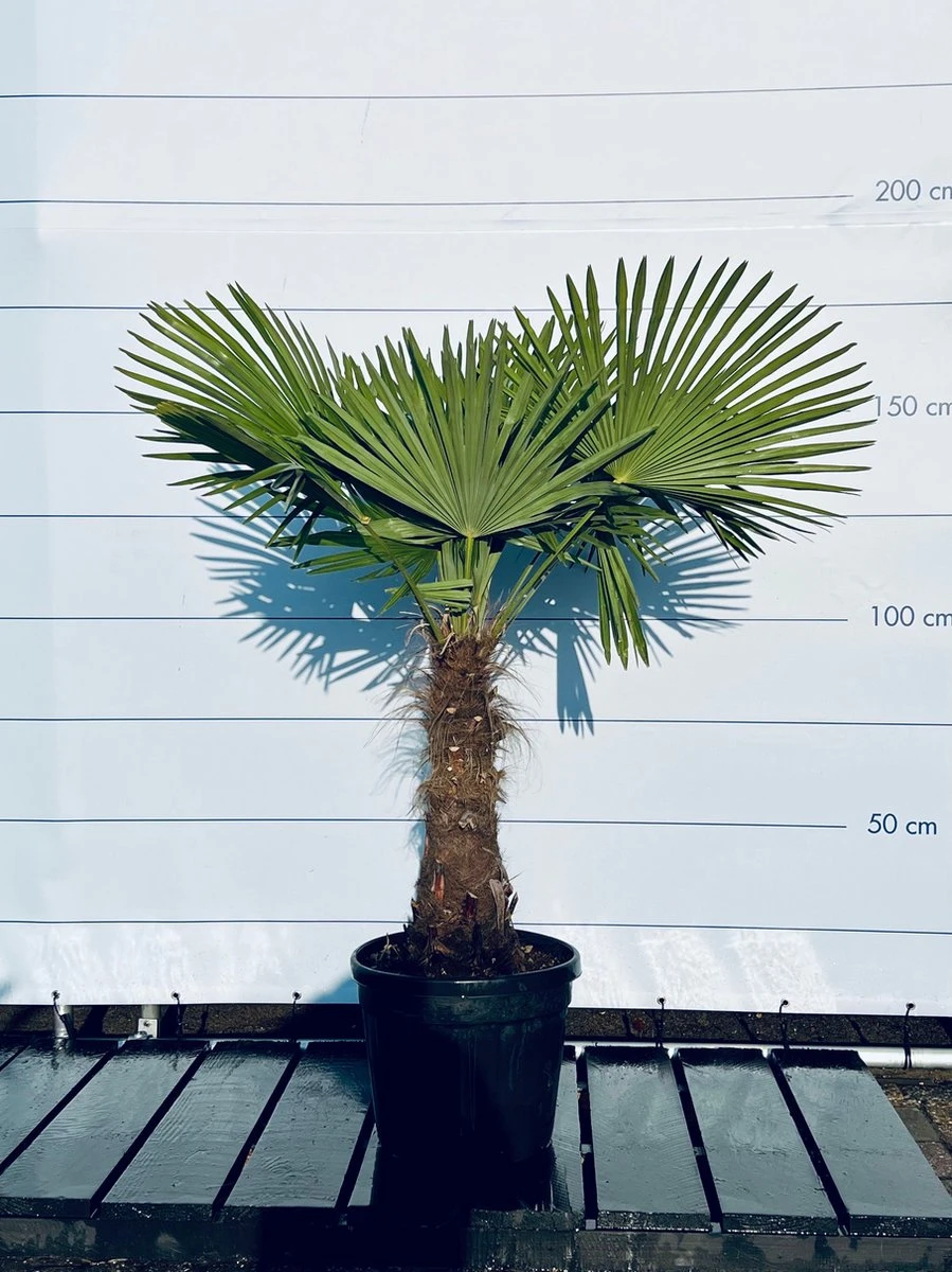 De Trachycarpus fortunei, ook wel bekend als de palmboom chinese waaijerpalm, is een prachtige en winterharde tuinplant die ideaal is voor buiten. Deze palmboom is een van de weinige soorten die het koude klimaat van Nederland kan overleven. Deze plant is een echte eyecatcher in de tuin. De palmboom is gemakkelijk te herkennen aan zijn grote, groene bladeren en de stevige stam. Deze plant kan tot wel 10 meter hoog worden.