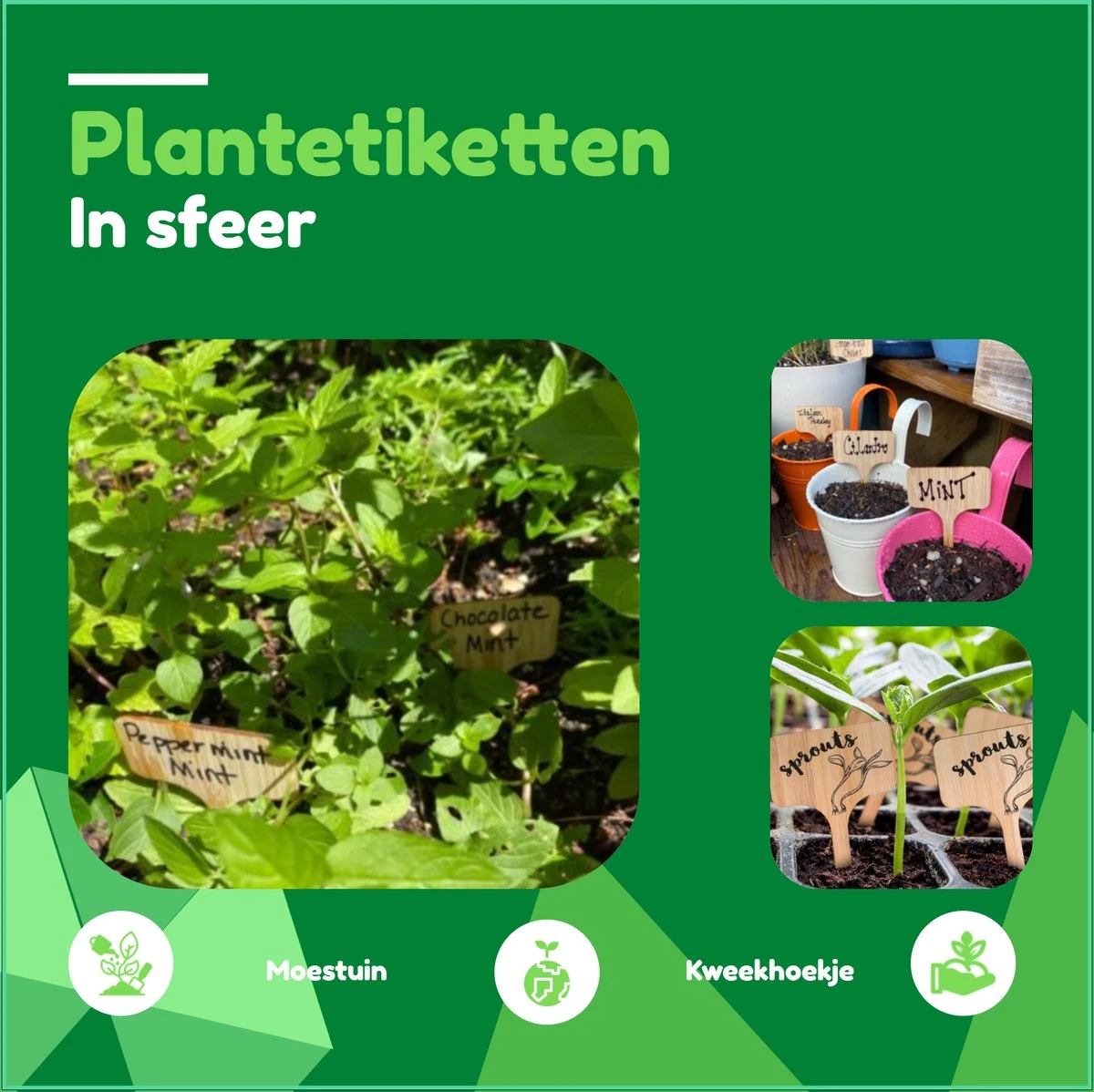 Een onmisbaar item voor in de tuin! De 100% bamboe plantlabels zorgen er voor dat je altijd weet waar en wat je aan het kweken bent. Zeer handig in gebruik door dat het label meerdere keren te gebruiken is. Schrijf er met de GRATIS bijgeleverde stift op en zie eenvoudig welke plantjes of bloemen je waar gezaaid hebt. Het label is 6cm bij 3.5cm dus genoeg ruimte om de naam van kruiden, groenten en fruit op te schrijven.